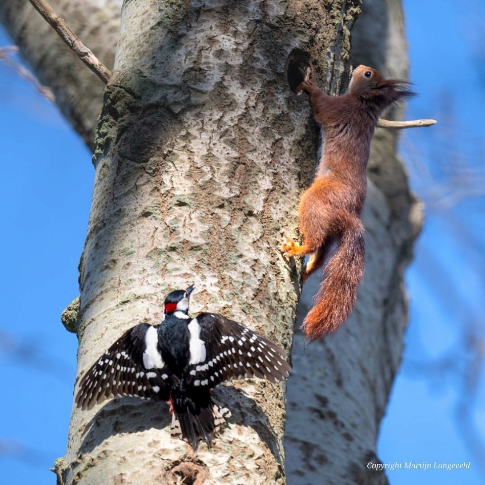 Grote bonte specht vs rode eekhoorn Haren(Gr)
